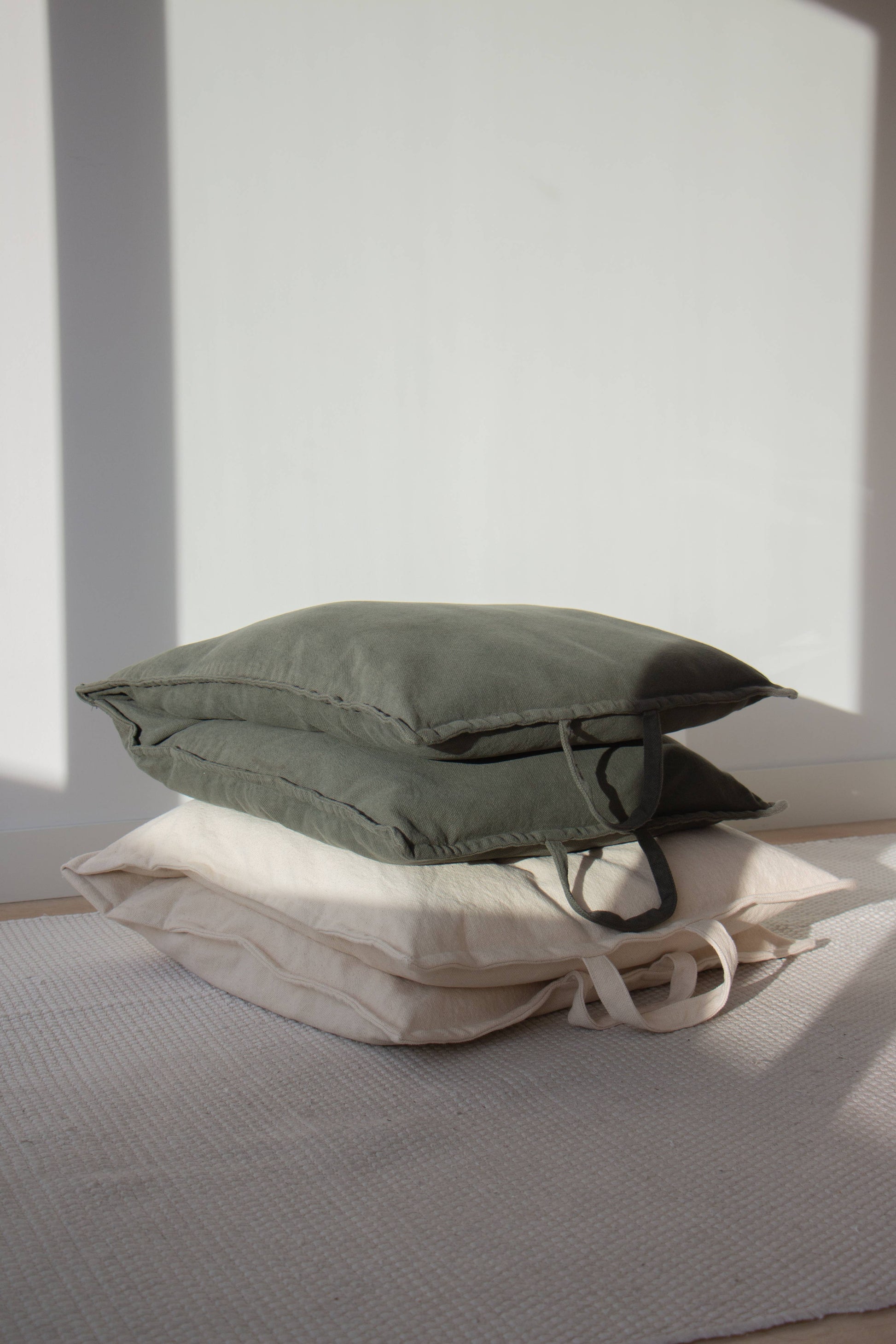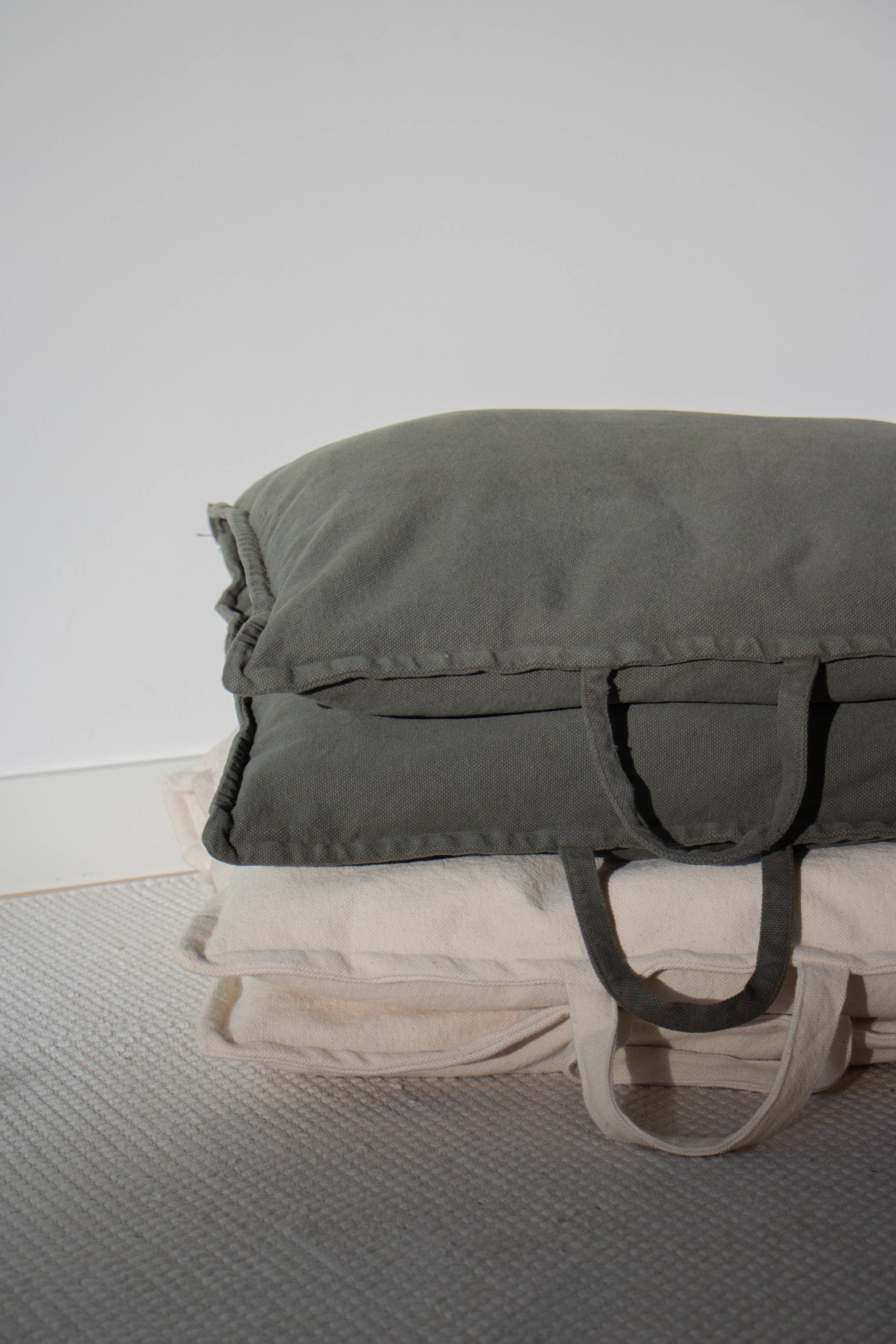 This minimalist pouf fits perfectly into all décor styles. With a simple and functional design, this pouf consists of two 65 cm cushions that can be used as a seat or to relax and read a book. It is made of 100% cotton, which gives you extra comfort and a comfortable feeling. Can be used in bedrooms or dining room. Combine it with a blanket and rug to create a trendy corner. Made in Portugal, this fabric was carefully chosen to reduce environmental impact.