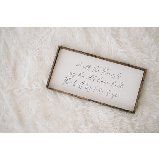All of these signs are handmade in Edmonton Alberta, Canada. Frames are made with real pine wood. Expect to see knots, holes, cracks and wood grain. We believe that this brings character and charm to the signs and makes each one truly unique! Backing is made of recycled material. On the back of every sign we expect to see marks & imperfections that show this sign has already lived a full and happy life!