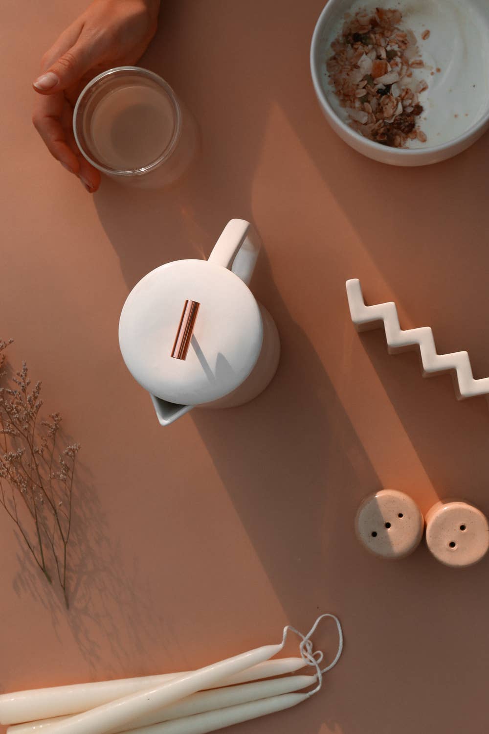 Fine Mesh Steel Filter, Ceramic Pitcher, & Lid Copper Pull